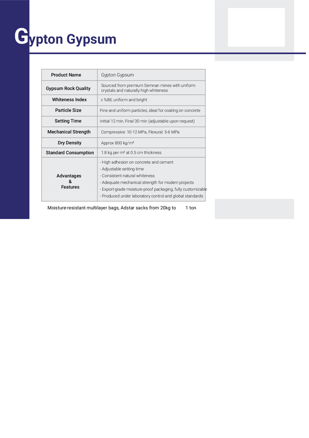 Product Name Gypton Export Gypsum